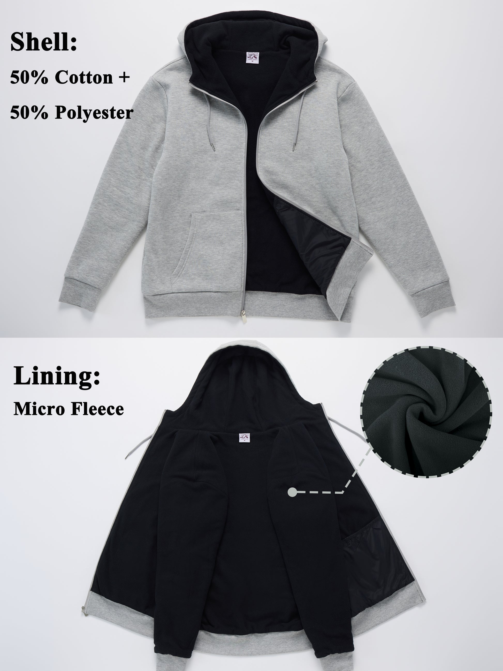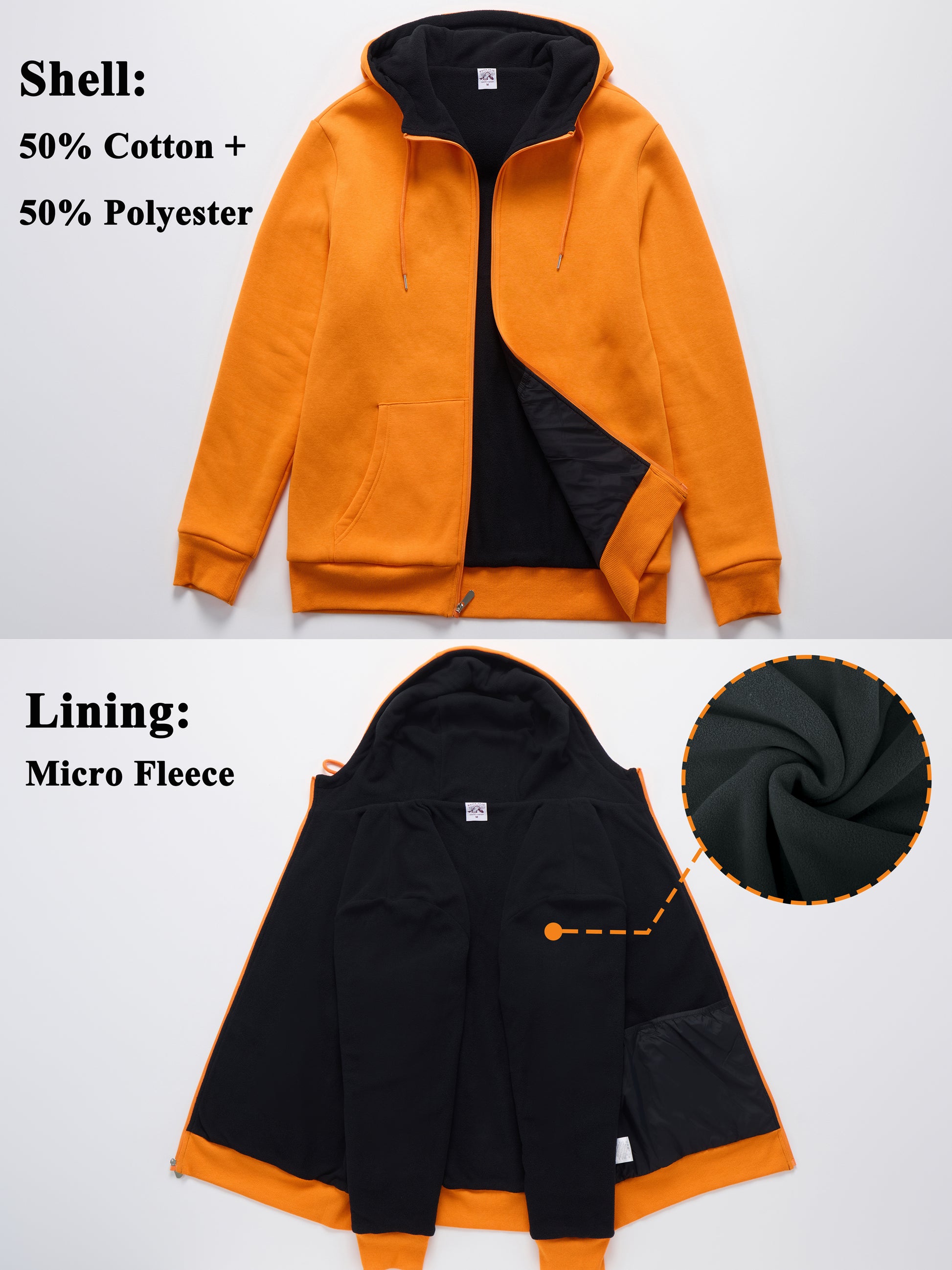 - MATERIAL: Our Men's Fleece Hoodie is made of 50% polyester+50% Cotton, Soft inner fleece lining for comfort and warmth in cold weather, the lining extends all through the body of the jacket, the sleeves , hood and pockets.Super warm and comfort